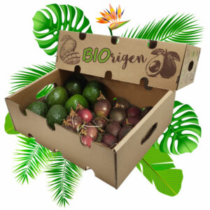 Caja de 4 kgs aprox. compuesta de 2 kgs. aprox. Fruta de la Pasión y 2 kgs. aprox. Aguacates Ecológicos de máxima calidad en su punto óptimo de maduración para su consumo en breve. Los envíos se realizan los jueves de cada semana.